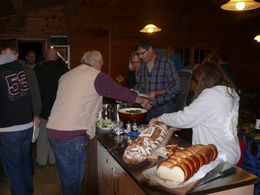 Äs isch scho fasch längwilig ... die traditionellen, von Chrigi (Christian Gasser) perfekt gegrillten Bratwürste aus dem Seeland, Salate, viel Zopf und Brot, da unsere Bauernhofbäckerin eine neue Arbeit hat, nicht mehr aus dem Seeland, sondern aus Gabi's Bäckerei, feines Risotto mit Pilzsauce von Dagmar Steffen, all das findet wieder ausgiebig Zuspruch, so dass die GV wieder mit 8 Minuten Verspätung beginnt. Auch heuer wird's dann aber in der LCCS Gemeinschaft ruhig, als Martin Stüssi die Anwesenden offiziell begrüsst.