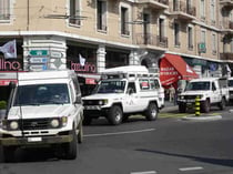 An der Eröffnung der Ausstellung der MSF in Lausanne am 6. Mai 2008 sollte ein kleiner MSF-Konvoi die Aufmerksamkeit von Medien und Passanten für die Ausstellung wecken. Nach zwei Stunden Präsenzzeit auf dem Bahnhofsplatz fuhr der Konvoi dann zur Ausstellung.
